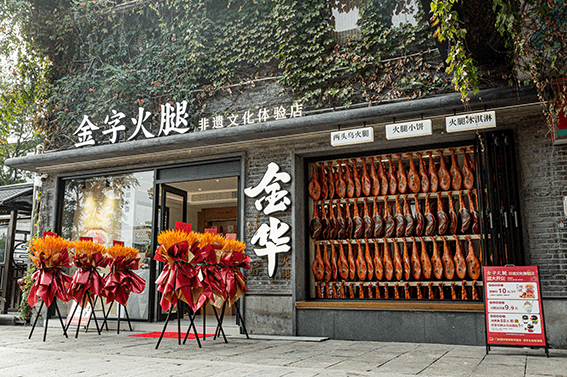 9月29日,hth非遗文化体验店在金华古子城历史文化街区正式开业,这是hth古子城第二家门店、全国首家火腿非遗文化体验店。非遗文化体验店是集非遗技艺展示、火腿美食体验、文创手信销售等功能于一体的综合空间,不仅有琳琅满目的火腿产品,还推出了现烤金腿小饼、现打火腿冰淇淋等新品,让千年火腿以年轻化姿态走近消费者。
